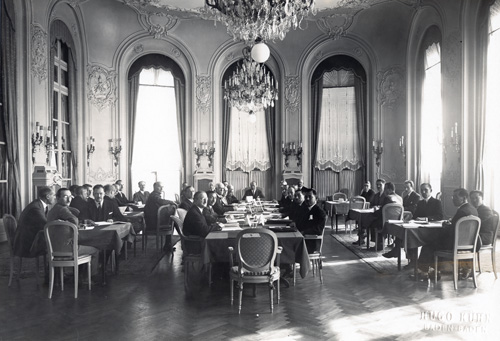 Meeting of central bank Governors and experts at the Hôtel Stéphanie in Baden-Baden, Germany, to draft the statutes and charter of the Bank for International Settlements, October-November 1929.